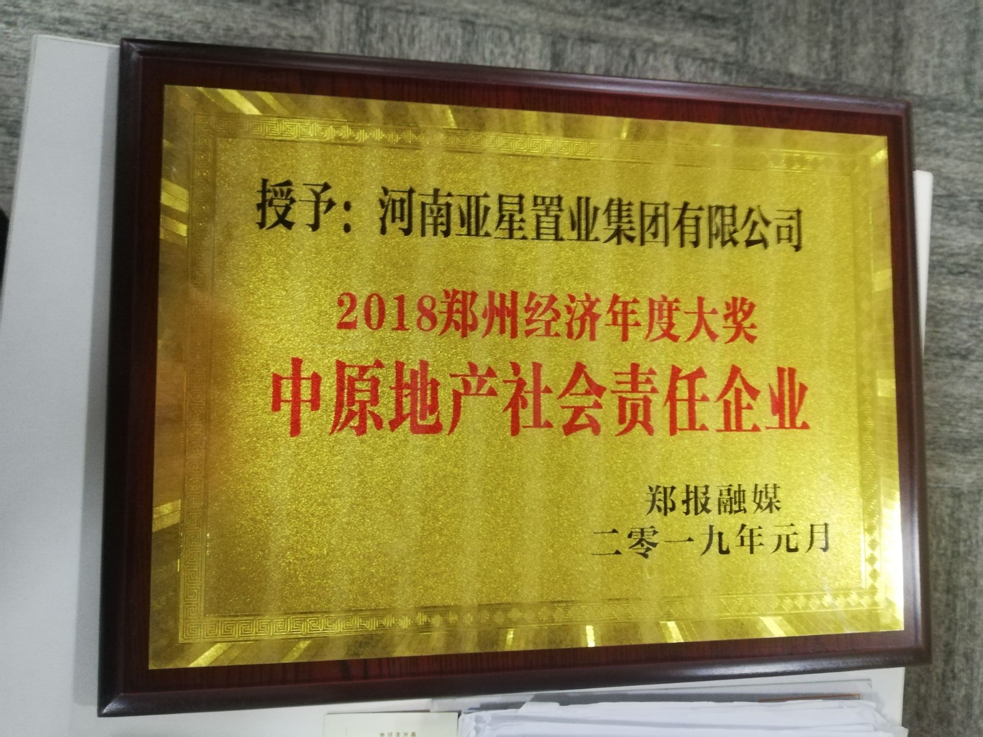 鄭州報業(yè)集團、中原網(wǎng)授予亞星錦...