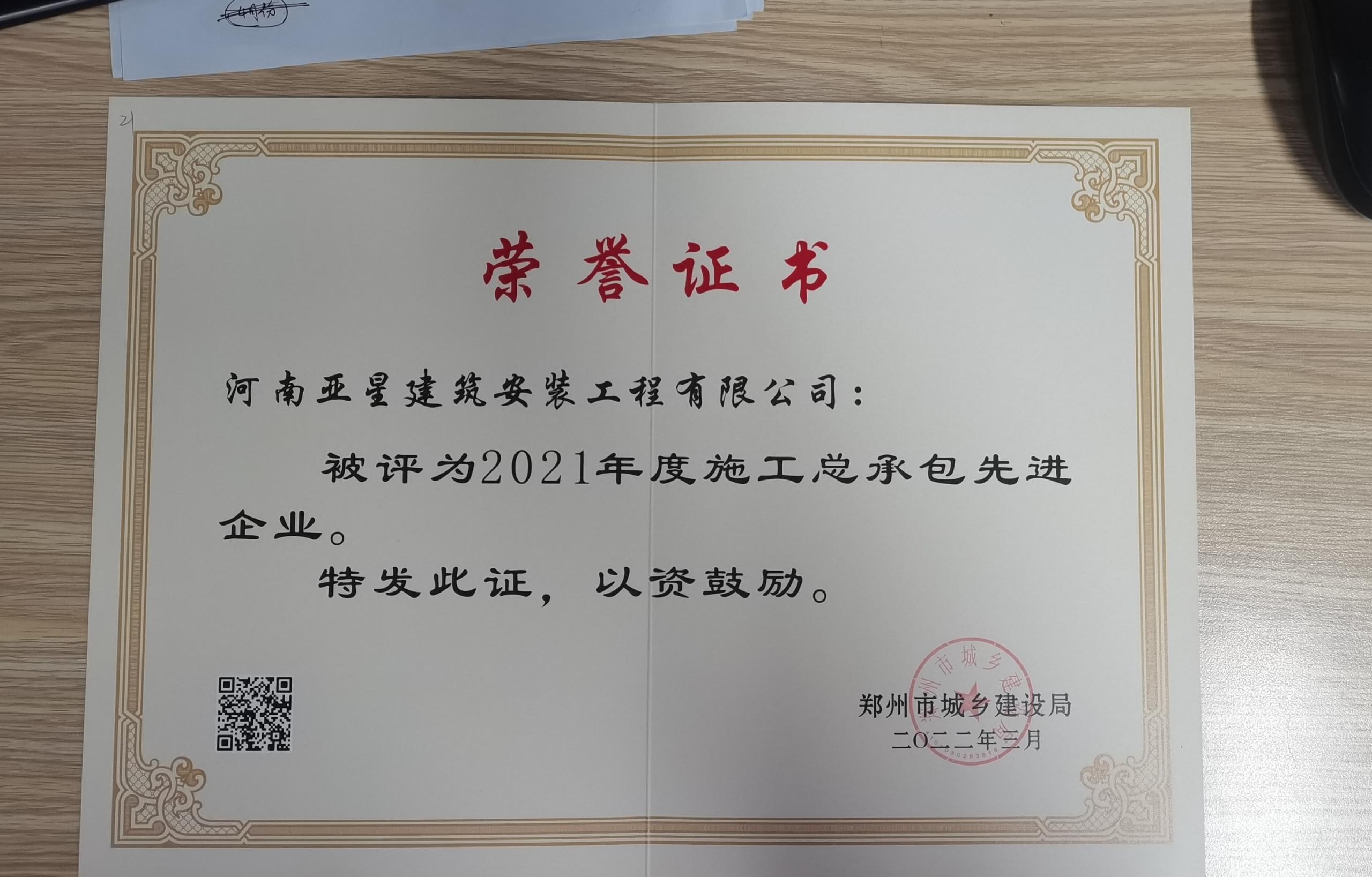 2021年度施工總承包先進企業(yè) -