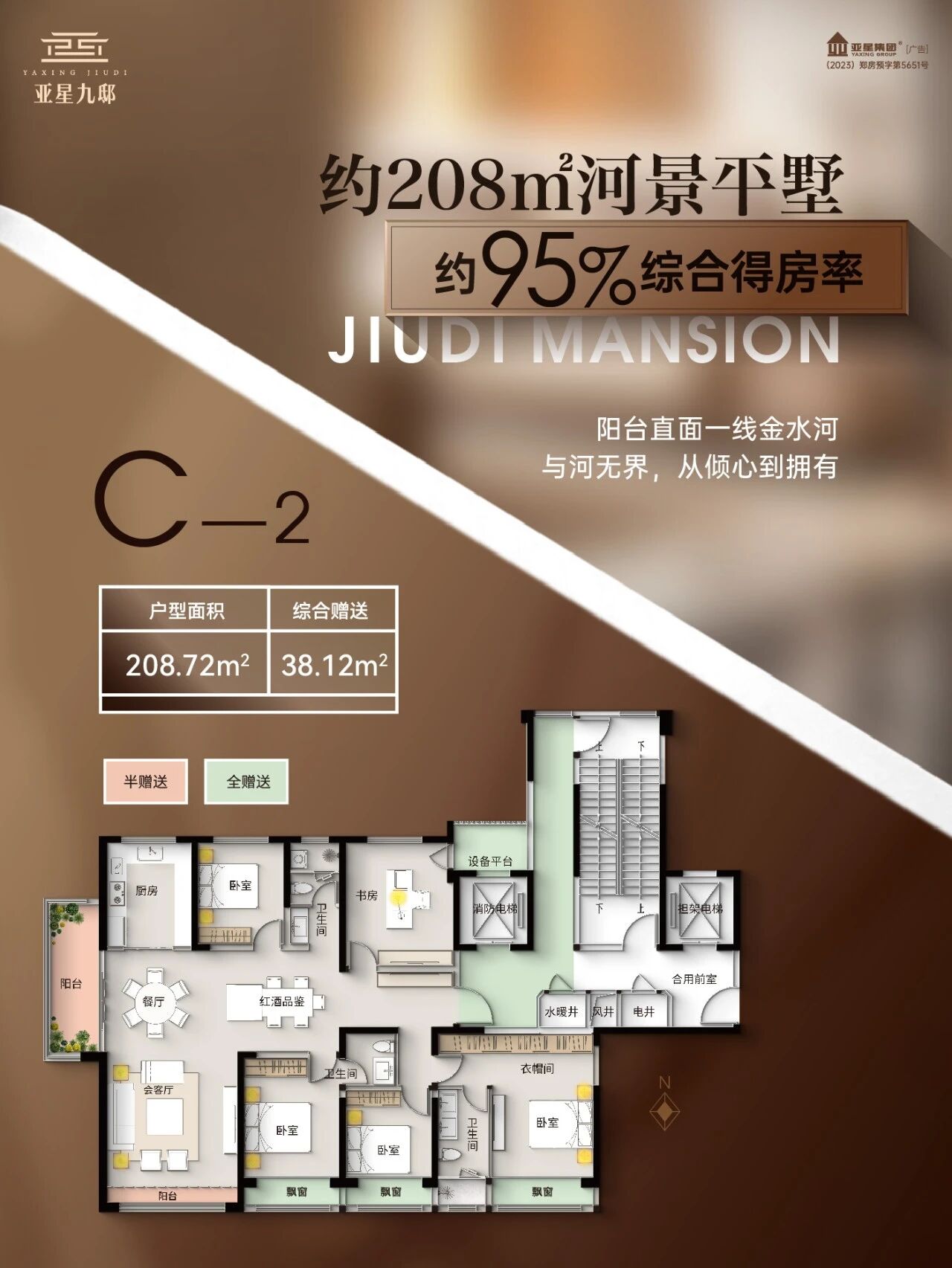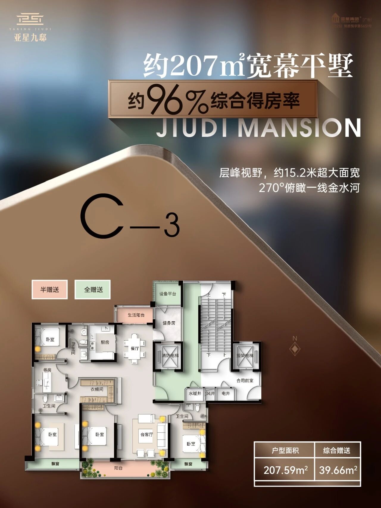 亞星九邸丨約96%綜合得房率,純改善河景大宅,以寬境敬進階人生
